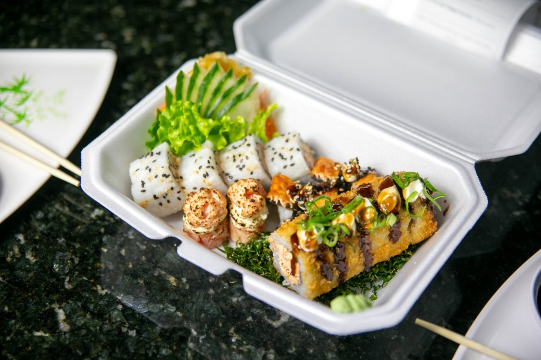 02 Joes Maçaricados, 02 Niguiris Skin, 04 Uramakis e 05 Hot Rolls.