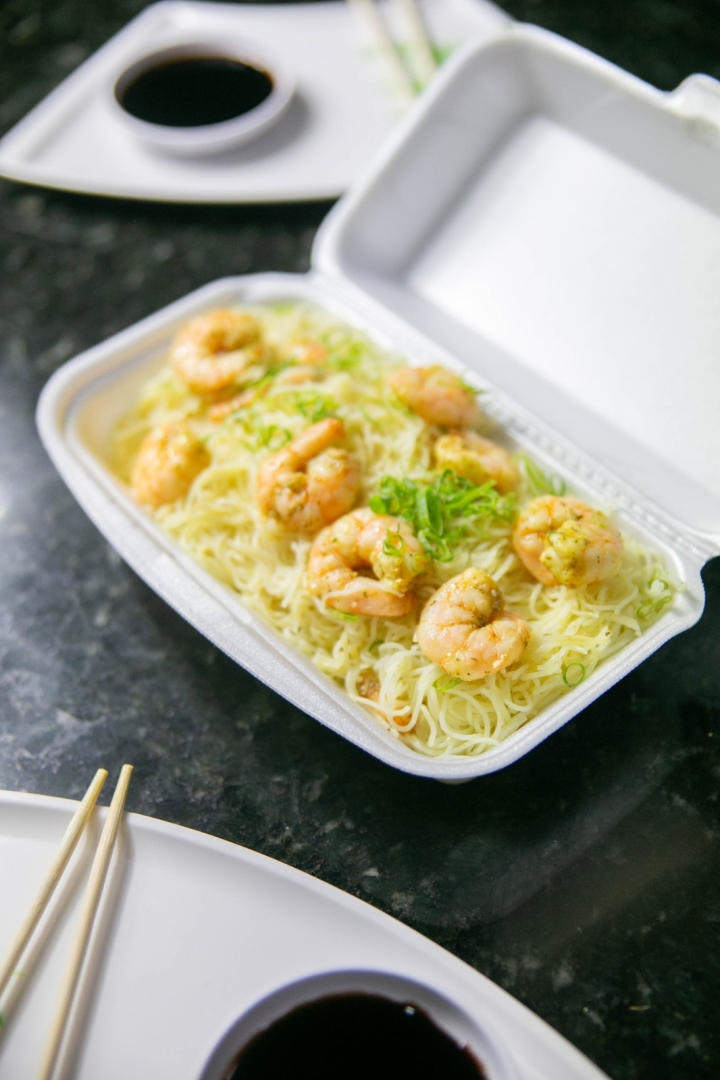 (Macarrão de Arroz com Camarão e Curry )