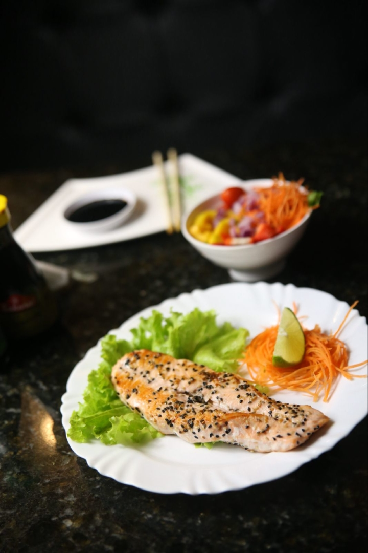 Teppan de Salmão com Gergelim Selado e Salada Individual